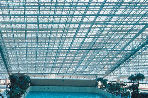 由多根桿件按照一定的網(wǎng)格形式通過(guò)節(jié)點(diǎn)連結(jié)而成的空間結(jié)構(gòu)。具有空間受力、重量輕、剛度大、抗震性能好等優(yōu)點(diǎn);可用作體育館、 影劇院、展覽廳、候車(chē)廳、體育場(chǎng)看臺(tái)雨篷、飛機(jī)庫(kù)、雙向大柱 網(wǎng)架結(jié)構(gòu)距車(chē)間等建筑的屋蓋。缺點(diǎn)是匯交于節(jié)點(diǎn)上的桿件數(shù)量較多,制作安裝較平面結(jié)構(gòu)復(fù)雜。